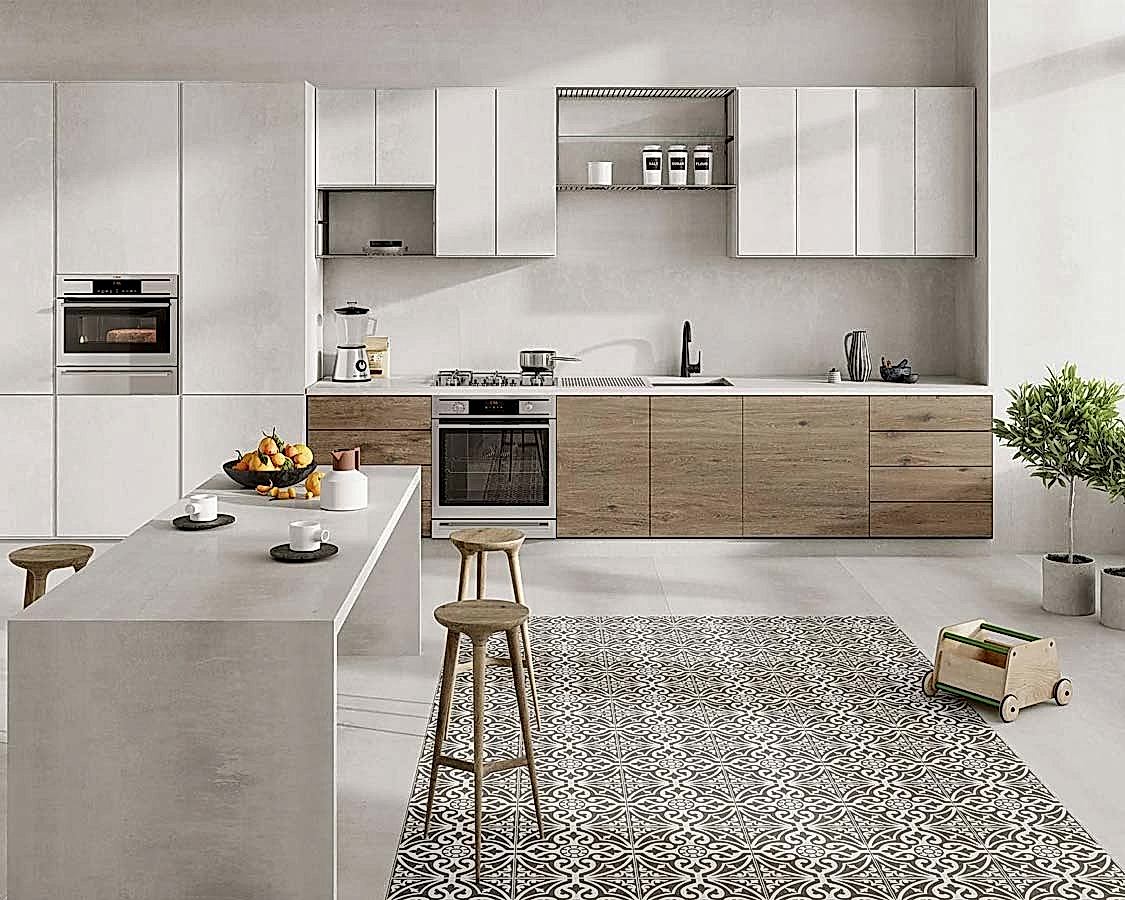 mermer ve granit tezgahlar yer almaktadır.porselen tezgah Azerbaycan'da mutfak kurulumunda porselen tezgahlar popülerdir, yenilikçi tasarımlara uygun ve projelerde tercih edilir.